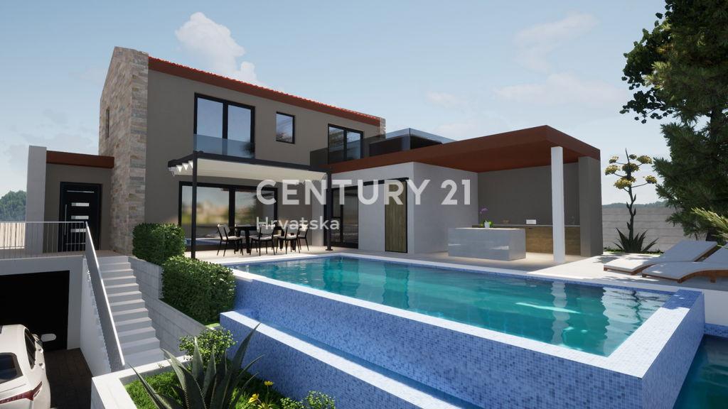 Pašman, Kraj, for sale is the construction land with a building permit for a residential building with a swimming pool.