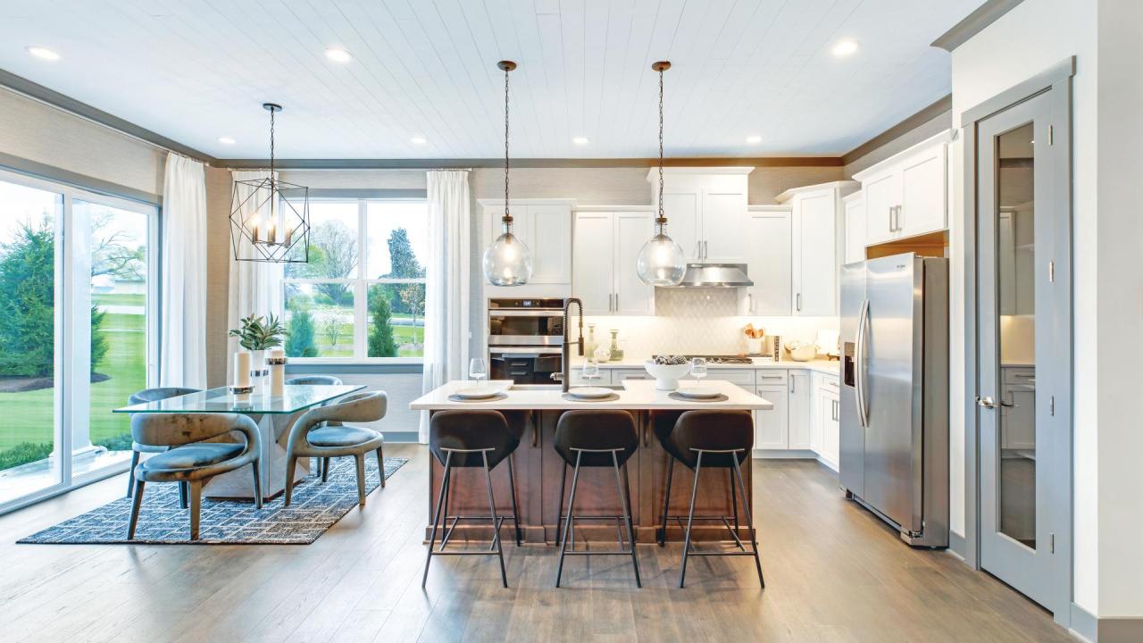 Urban deluxe style. The Berks welcoming entry and foyer open onto the spacious dining room, great room, and desirable covered patio beyond. The well-designed kitchen overlooks a bright casual dining area, and is equipped with a large center island and plenty of counter and cabinet space. The lovely primary bedroom suite is highlighted by a tray ceiling, huge dual closets, and spa-like primary bath with dual-sink vanity, luxe glass-enclosed shower with seat, and linen storage. The secondary bedroom features a roomy closet and shared full hall bath. Additional highlights include a versatile office off the foyer, centrally located laundry, and additional storage.